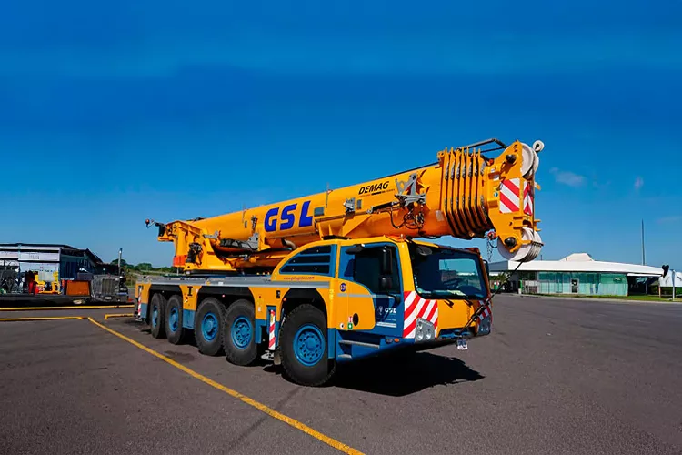Si necesitas una solución con mayor capacidad de carga, en GSL también tenemos disponibles grúas con capacidad de soporte de 150 toneladas y un alcance de pluma de hasta 100 metros.