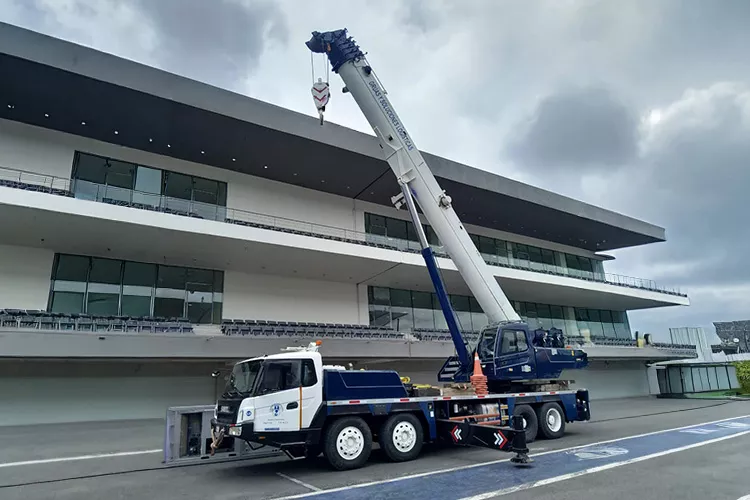 Si necesitas un equipo con mayor capacidad de carga, en GSL contamos con la opción ideal como la grúa industrial con capacidad de carga de 500 toneladas y alcance de pluma de hasta 100 metros.